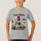 The t-shirt feels and looks great quality, a good thick cotton. It will be a little big for my son, but that means he will be able to wear it and not out grow it too soon. The print was as described on the order when personalised. True size, shape and colour T-shirt- thanks.