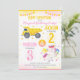 With soft watercolor details, colorful stars, and a bold split layout for easy personalization, this invite is ideal for a construction unicorn birthday, sibling joint party, trucks and magical theme, girly construction party, editable kids birthday invitation, and a pink and yellow birthday celebration.