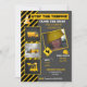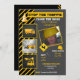 Construction Birthday Invite includes a dump truck, bull dozer, big machine, digger for kids, boys with yellow orange and black design