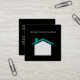 Minimalist style construction or home services professional business cards template presented on black core business card stock for the ultimate first impression with your business or professional name featured on the front and your contact and business details on the back. Designed for businesses involved in home construction or home services, real estate, or roofing service.