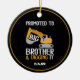 Celebrate your little one's promotion to big brother with this custom boy Christmas tree ornament with an adorable construction theme. The ornament has a yellow excavator with the text Promoted to Big Brother and Digging It. Add the date of his new little sibling's birth or remove per your preference. Add a photo to the back for an extra special touch.