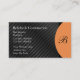 Construction business cards with modern design that includes a company monogram, orange emblem, modern black background, and text you can easily customise and personalise. Designed as a business card template for a construction company, builder, or building contractor.