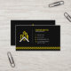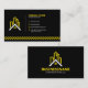 This bold and eye-catching business card uses a classic yellow and black colour scheme to create a strong visual impact. Featuring a distinctive logo of a building with a house, this card is instantly recognisable and leaves a lasting impression. The black background provides a striking contrast to the bright yellow accents, including a caution tape-style border, creating a design that is both professional and memorable. This card is ideal for showcasing your expertise in the construction industry and making a statement with your brand.