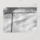 Really nice quality postcard. The photo completely covers the front. The back of the postcard contains the title of the image, a vertical geometric design to separate where you write the address from your text, and an image for where to put your stamp. The black & white photo of a construction crane in front of a sky of cool wispy clouds printed great. The text on the back printed clearly. Love it!