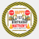 Construction Dump Truck 1st Birthday Party Classic Round Sticker