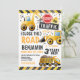 👷♂️ Design: Featuring a vibrant and playful construction theme, this invitation showcases colourful excavators, dump trucks, and tools, creating an exciting atmosphere right from the start.