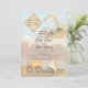 Created with a muted watercolor less traditional pallet, this boy "Baby Shower" design features a dump truck and a backhoe-excavator on a construction site with the caption "Caution Baby Under Construction". The muted pallet is continued on back with a charcoal grey and softer yellow diagonal striped pattern. Composite design by Holiday Hearts Designs (rights reserved).