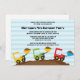 This boys birthday party invitation has a cute construction theme. At the bottom, there is three different construction trucks hauling lots of dirt. At the top and middle, you can customise all of your party information. Graphics by babystardesign.com