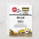 Fun construction birthday party invitation with dump truck, digger and bulldozer! The saying is Stop the Traffic and Close the Road and has a stop sign and construction road block traffic barrier. The distressed font fits this invite perfectly. Add your child's name and age as well as party details. See coordinating items in our shop, Enchanted Finch.