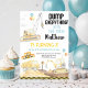 This cute birthday invitation features watercolor construction trucks and colourful balloons.