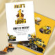 Featuring a bold, yellow dump truck against a backdrop of construction icons, this invitation sets the stage for a truly special event. Whether your child is obsessed with diggers, excavators, cranes, or anything that goes "vroom," this design captures the excitement and wonder of a first birthday perfectly.