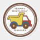 Colourful dumptruck sticker accented in brown for birthday party favours and more. Change text to suit your needs.