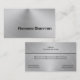 Construction grey metal business cards. On the front there is your name in charcoal grey using the cool font Screwed Regular on two tone grey metallic texture. It can be replaced by your company name as it is a template. On the back there is the same textured metallic pattern with a black stripe across the card. This customisable masculine design is perfect for construction and maintenance or other industry fields. Note that there is no real metal on the business card.