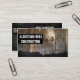 Construction Handyman Business Card. A rough and tumble card great for any man in the labour field. Showcases wood planks, which every handyman uses and fixes in his business. Also shows tire tread and metal, making this professional business card very manly and great for that blue collar worker!