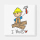 A stick figure construction worker with lumber, hammer, and hard hat and text that reads "I Build" on construciton worker T-shirts, mugs, magnets, cards, stickers, keychains, tote bags, and more.