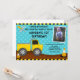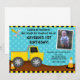 Invite your guests to your little ones birthday party in a fun way with this adorable kids construction trucks photo birthday invitation.
