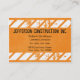 Construction Business Cards Manly and bold attention grabbing construction company business cards will make a memorable impression on your clients and customers. Large size and quality card stock at an affordable price. Also available in Indestructible paper! Bold orange and white colour design. © 2010 Sublime Stationery All Rights Reserved
