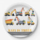 Construction party upsherin birthday plate with trucks and name
