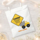 A road sign and dump truck are front and centre on this construction truck favour bag. It's the perfect bag for some construction themed party favours.