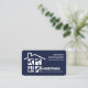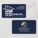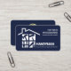 An all dark blue cover features a creative rooftop design with respective tools in their boxes. They can represent some of the work that you might offer e.g. the hammer for home repairs, roller brush for painting, the trowel and fork for gardening/landscaping and finally the saw and measuring tape for carpentry. Near the top corner is your prestigious name and a slogan caption option to publicise your services. Near the base, beside the rooftop design lies the business name and its contact details.