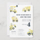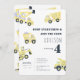 Make your child's fourth birthday unforgettable with this modern construction dump truck invitation. The design features watercolor illustrations of yellow dump trucks, on a simple white background making it both fun and charming, while the phrase "Dump everything and join the crew" adds a playful element to the card. Use the design tools to customise the text, fonts and colours! Also available as digital download for instant invites.