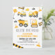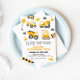 Construction Truck Birthday Party with dump truck, crane, caution signs and orange cones.