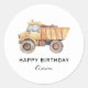 Construction Truck Birthday Modern Minimal Classic Round Sticker