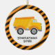 Let your little boy decorate the Christmas tree with this cute holiday ornament featuring a dump truck on an orange and black stripe background and personalised with your child's name and year. Makes a great gift!