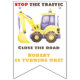 Watercolor kids birthday party. Watercolor Construction Truck Excavator. "Stop the traffic. Close the road."