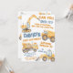 Construction Theme Birthday Dump Truck Party Invitation for your kid's birthday party! Features hand-drawn construction trucks. Construction Invitation, Construction Birthday Invitation, Construction Invite, Construction Party Invite, Dump Truck Party Invite, Stop the Traffic and Close the Road, Bull Dozer, Digger, Cement truck, a wrecking ball crane, splatters of dirt, and a modern kids birthday celebration template that is easy to personalise. More designs and party supplies are available at my shop NiceStudioCreative.
