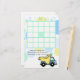 Baby shower bingo card to compliment our construction trucks baby shower invitation with soft blue, green and yellow confetti dots and dump truck.