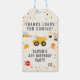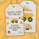 Construction trucks dump everything birthday gift tags for party favours for a fun out of this world celebration vibe for a boy birthday party favour. Customise names, dates, and information.