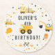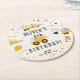 Construction trucks dump everything birthday paper coaster for a fun themed celebration vibe for a boy birthday party. Customise names, dates, and information.
