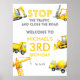 This fun birthday party welcome sign features construction trucks and crane. Designed by Thisisnotme©