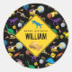 Construction Trucks Dinosaurs in Space Birthday Classic Round Sticker