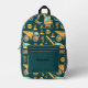 This rugged backpack features a cool all-over print on a dark green background, covered with a dynamic pattern of excavators, dump trucks, and road signs in bold yellow and orange tones. The customizable name "Benjamin" on the front pocket adds a personal touch, matching the black hardware for a sleek, coordinated look.