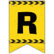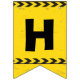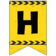 Cool custom construction vehicle Happy Birthday bunting banner for a kid or adult who loves yellow construction vehicles in black and yellow. Fun vehicle design for a little boy who loves cars and trucks. Black and yellow caution tape with a dump truck, excavator, and concrete mixer.