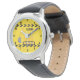 Cool custom construction excavator watch for a child who loves yellow construction vehicles in black and yellow. Fun vehicle wristwatch for a little boy who loves cars and trucks. Customise with your kid's name under the black and yellow caution tape.