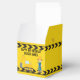 Cool custom construction excavator birthday party favour box for a child who loves yellow construction vehicles in black and yellow. Fun vehicle design for a little boy who loves cars and trucks. Customise with your kid's name between the black and yellow caution tape.