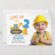 Need construction birthday party ideas for your boy on his 2nd birthday? This fun and cute boy second birthday party photo invitation with a construction theme, featuring an illustration of a construction bulldozer and a fun title: "Level Up to 2" is just the ticket. Celebrate your little boy with this construction invite that will make your little man happy, if he is crazy about all things construction. The perfect 2nd birthday party construction birthday invitation that you can fully personalise.