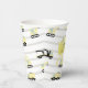 This cute and modern boy's construction birthday paper cup features a white background with construction vehicles such as a dump truck, excavator, crane, and wrecker. Personalise for your needs. You can find more matching products at my store.