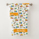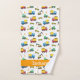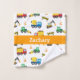 Colourful construction vehicles pattern for the little builder! The pattern is make up of lots of construction elements like a red and yellow dump truck carrying the debris, an orange excavator, a green front loader pushing dirt, a blue and yellow concrete mixer, orange and white cones and a yellow and black construction zone barrier. Perfect for boys who love construction vehicles, toys and machines! Personalise with the name of the kid.