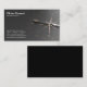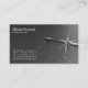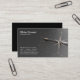 Business card with a gold compass on a black background.