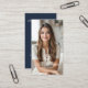 Make a confident and professional impression with this navy blue business card for consultants and corporate professionals. The deep blue tone conveys trust, expertise, and sophistication, while the clean layout highlights your photo, name, and contact details. Perfect for business consultants, advisors, and coaches, this timeless design blends modern style with executive polish. Easy to personalise and print-ready for a sleek, professional finish.