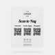Streamline transactions with our personalised acrylic sign for contactless payment. Featuring your logo at the top, followed by two QR codes for different payment options. Below, find your contact information for easy communication. Enhance convenience and professionalism with this elegant solution.