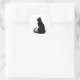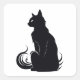 The image is a black silhouette of a cat sitting with its tail curled and looking to the side.