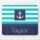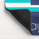 Nautical mousepad with turquoise & navy blue striped pattern and customisable text.