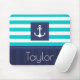 Contemporary Aqua Navy Blue Anchor Personalised Mouse Pad