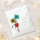 Wrap up party favours in style with personalised paper favour bags. These bags have a clean and modern look. They feature a floral illustration inspired by Art Nouveau design in black, bright turquoise blue, red, light green and golden yellow. Your custom text is in a clean sans serif font.
