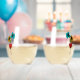 Add a special touch to your wedding with these personalised wineglasses. They are ready to be customised with the names of the bride and groom and their wedding date and feature a floral illustration inspired by Art Nouveau design in black, bright turquoise blue, red, light green and golden yellow. Your custom text is in a clean sans serif font.